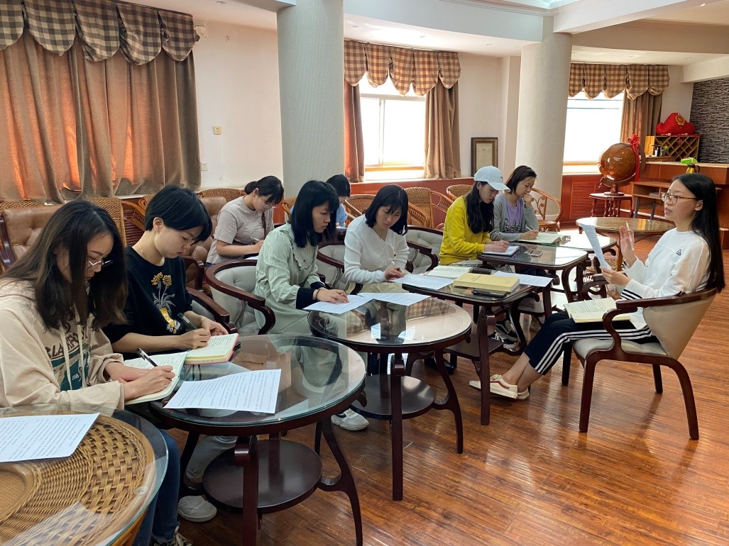 5月7日上午,外国语学院辅导员招聘模拟考试培训会在院common room进行,研究生辅导员刘晓涵,报考辅导员的12名研究生党员参会。