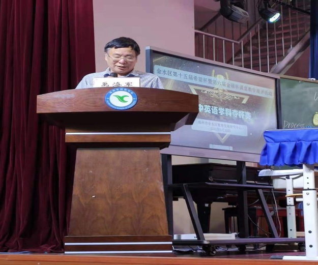赛后,王晔和河南省教研员禹海军分别对此次比赛课例进行了点评。王晔老师表示参赛选手的教学能力和素养予以肯定,认为教师们为英语课程标准学科核心素养在实际教学中的落地做出了良好示范,也为我校英语师范生未来的培养提供了新的思路。禹海军老师称赞了参赛教师过硬的语言素养和巧妙的教学设计,并围绕“如何让学生的英语学习真正发生”这一问题,梳理了课堂教学流程的整体逻辑,重点分析了教师对语篇材料的研读和处理的误区,为一线教师未来英语课堂教学的改进和提升提供了方向。