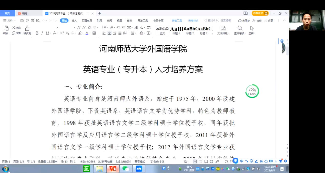 9月4日,外国语学院通过线上平台腾讯会议召开“2021级英语专业(专升本)培养方案讲解会”,会议由辅导员刘晓涵主持,学院副院长张军民、语言学教研室主任史晓伟、视听教研室主任杜爱玲及2021级英语专业(专升本)全体学生参加会议。