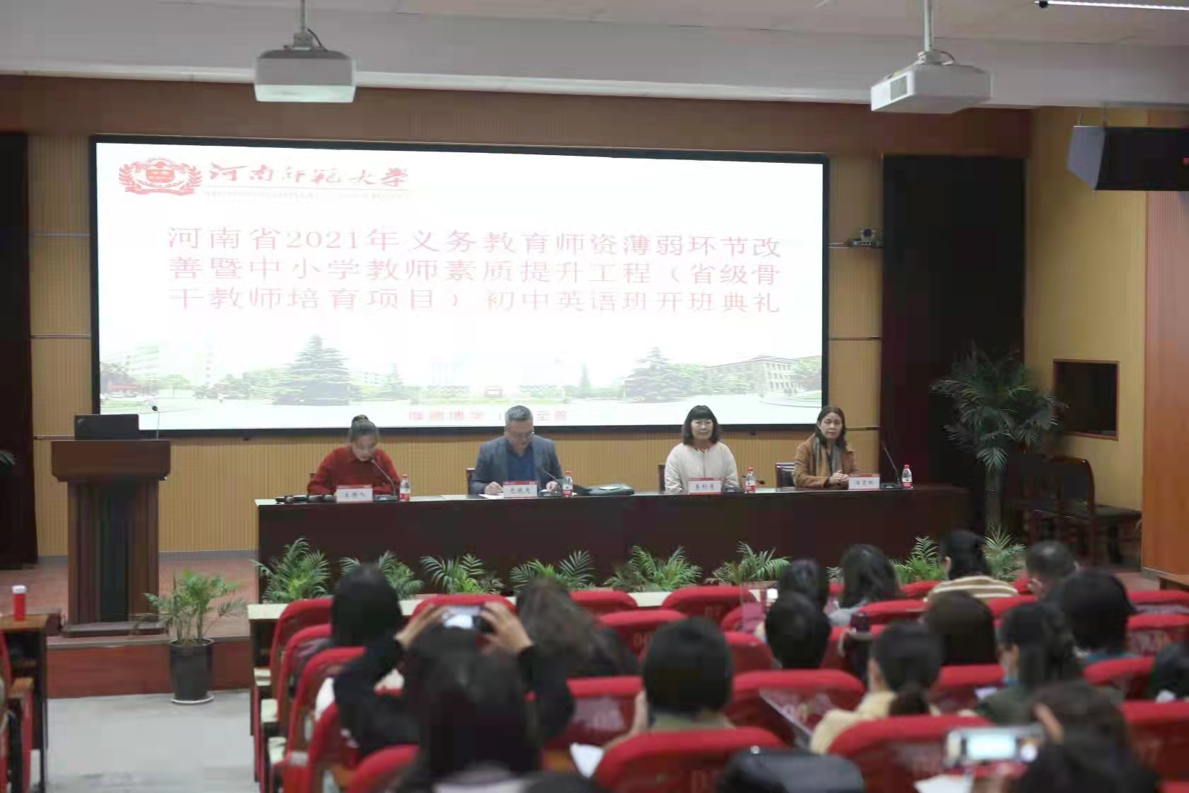 11月2日上午,由外国语学院承办的河南省2021年义务教育师资薄弱环节改善暨中小学教师素质提升工程(省级骨干教师培育项目)初中英语班开班典礼在河南师范大学外国语学院报告厅如期举行。河南师范大学外国语学院党委书记包晓光、河南师范大学外国语学院办公室主任李利芳出席开班仪式,班主任冯志红及来自河南省各地的100名参训教师参加了开班仪式。