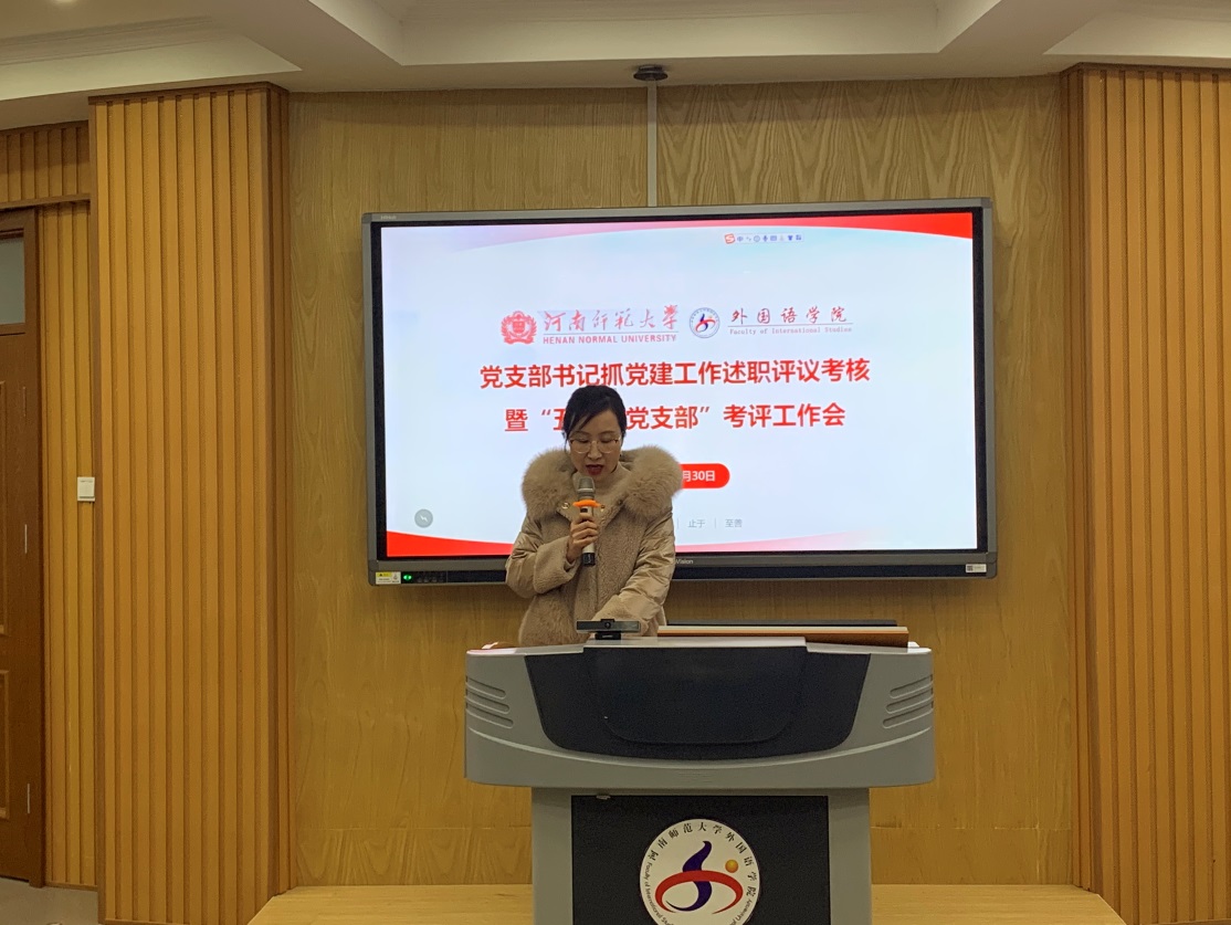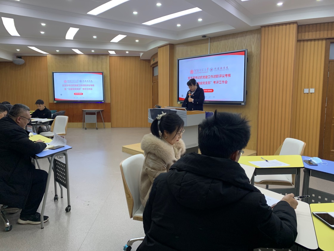 为推动全面从严治党向纵深发展、向基层延伸,压紧压实党支部书记抓党建的政治责任,根据中共河南省委高校工委和学校党委要求,12月30日,外国语学院在学院智慧教室召开2021年度党支部书记抓党建工作述职暨“五星级党支部”考评会议。学院党委书记包晓光、院长刘国兵、全体支部书记参加会议。