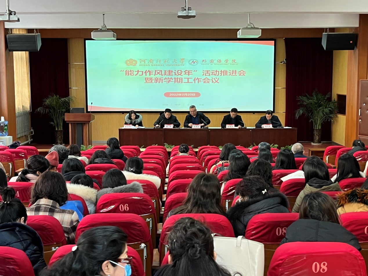 2月20日下午,外国语学院于学院报告厅开展“能力作风建设年”活动推进会暨新学期工作会议,学院全体教职工参加会议。