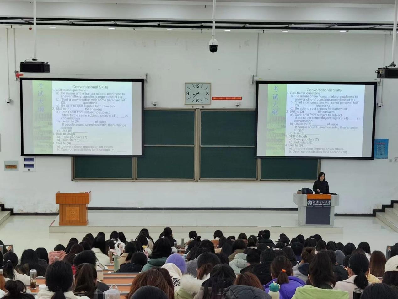 为使同学们在考前全方位了解英语专业四级题型及做题技巧,合理且有针对性地进行复习备考,避免备考过程中可能出现的策略失误、焦虑迷茫等问题,2月26日,外国语学院在文昌楼127教室开展专题指导讲座。讲座特邀外国语学院英语系主任赵波、视听教研室主任杜爱玲担任主讲人,外国语学院2020级英语、翻译专业全体学生参加。