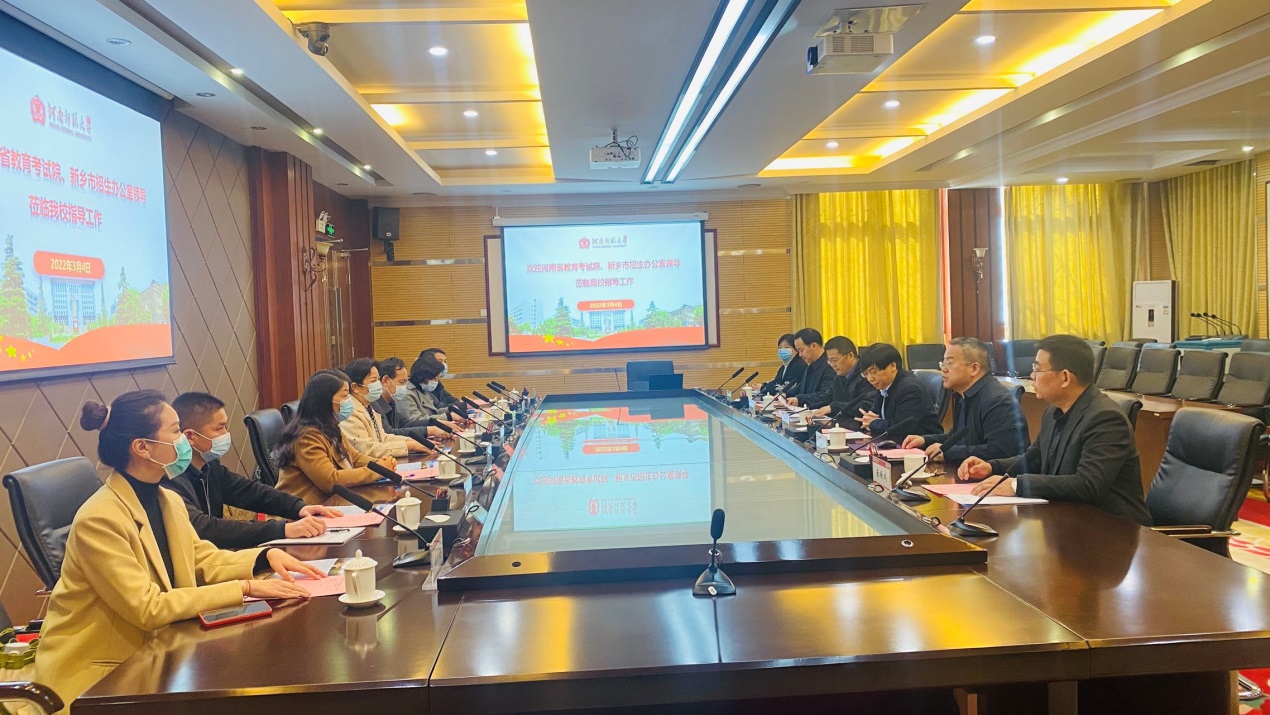 3月4日上午,河南省教育考试院成招处副处长李秀英一行四人来我校考察全国大学英语四(六)级口语考试考点建设工作,新乡市招生办公室负责同志陪同考察。校党委常委、副校长郭海明出席考察座谈会,教务处处长聂国兴、外国语学院院长刘国兵及相关工作人员参加会议。会议由教务处处长聂国兴主持。
