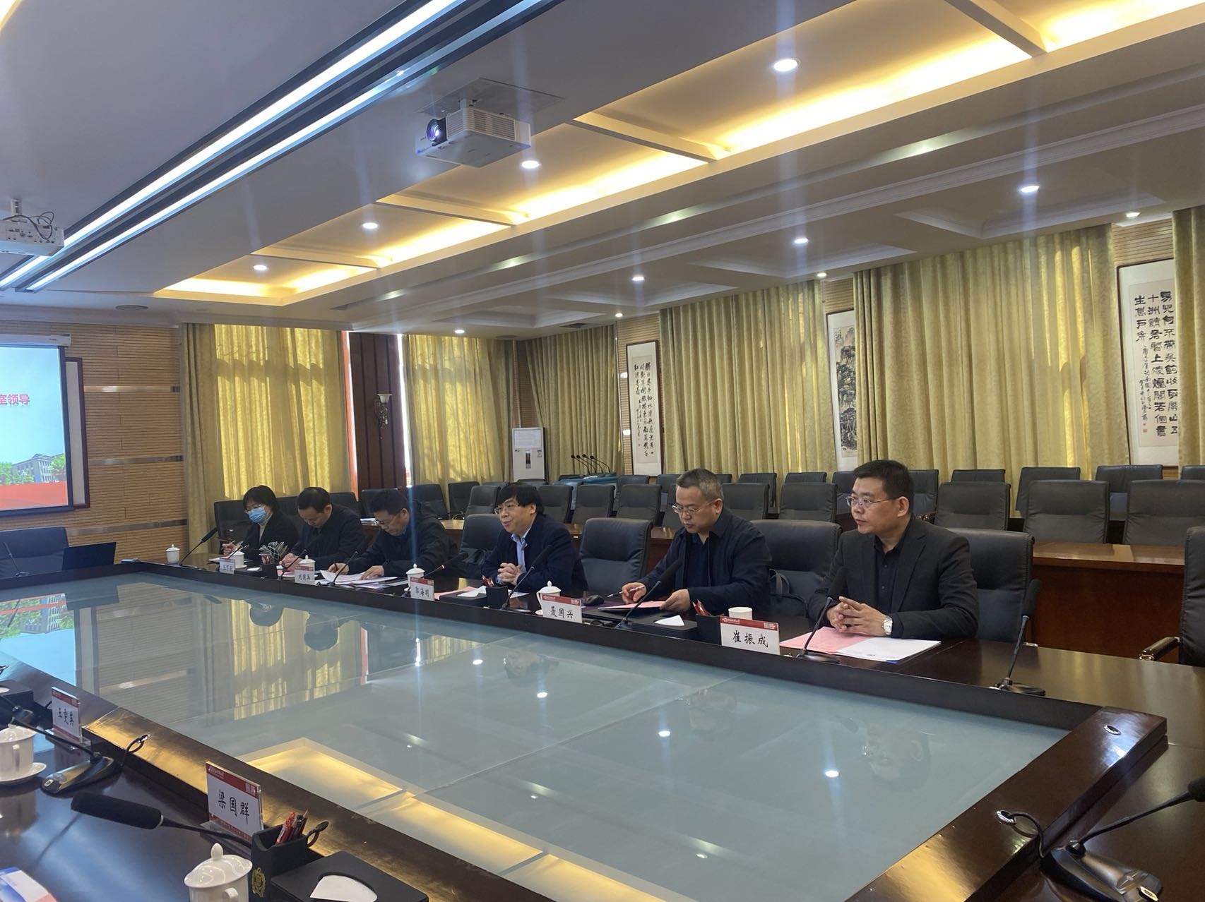 郭海明代表我校致辞。他向考察组介绍了我校发展近况、四(六)级考试笔试情况及设立口语考点的必要性。郭海明指出,为响应考生参加口语考试的迫切需求,我校投入专项资金申请设立全国大学英语四(六)级口语考试考点,这是落实以学生中心、支持学生发展的现实需要。