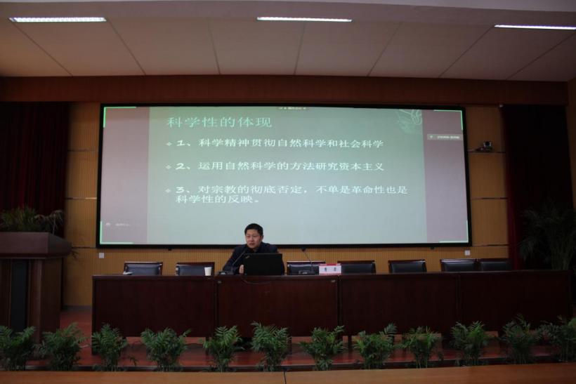 开班仪式结束后,曹崇以“坚持理论自信 保证教育底色”为主题,为全体学员讲授了第一堂党课。首先,曹崇分别从理论内核、时代背景、哲学意义等方面论证了“马克思主义为什么行”。此外,他史论结合,旁征博引,借助“中华疆域变化”、“中国经济变化”等相关视频,详细为学员讲述了中国历史的发展演变过程。最后,曹崇勉励在场学员要珍惜、把握当前时代发展机遇,始终坚持马克思主义理论的科学指导,坚定理想信念,知国爱国,知党爱党。