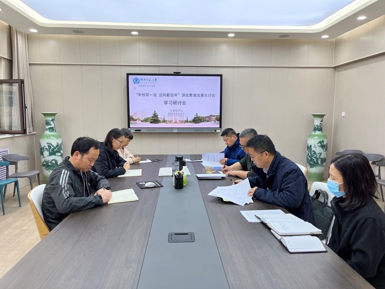 会上,院领导班子成员就“争创双一流 迈向新百年”深化教育改革大讨论活动进行了深入地交流与讨论。