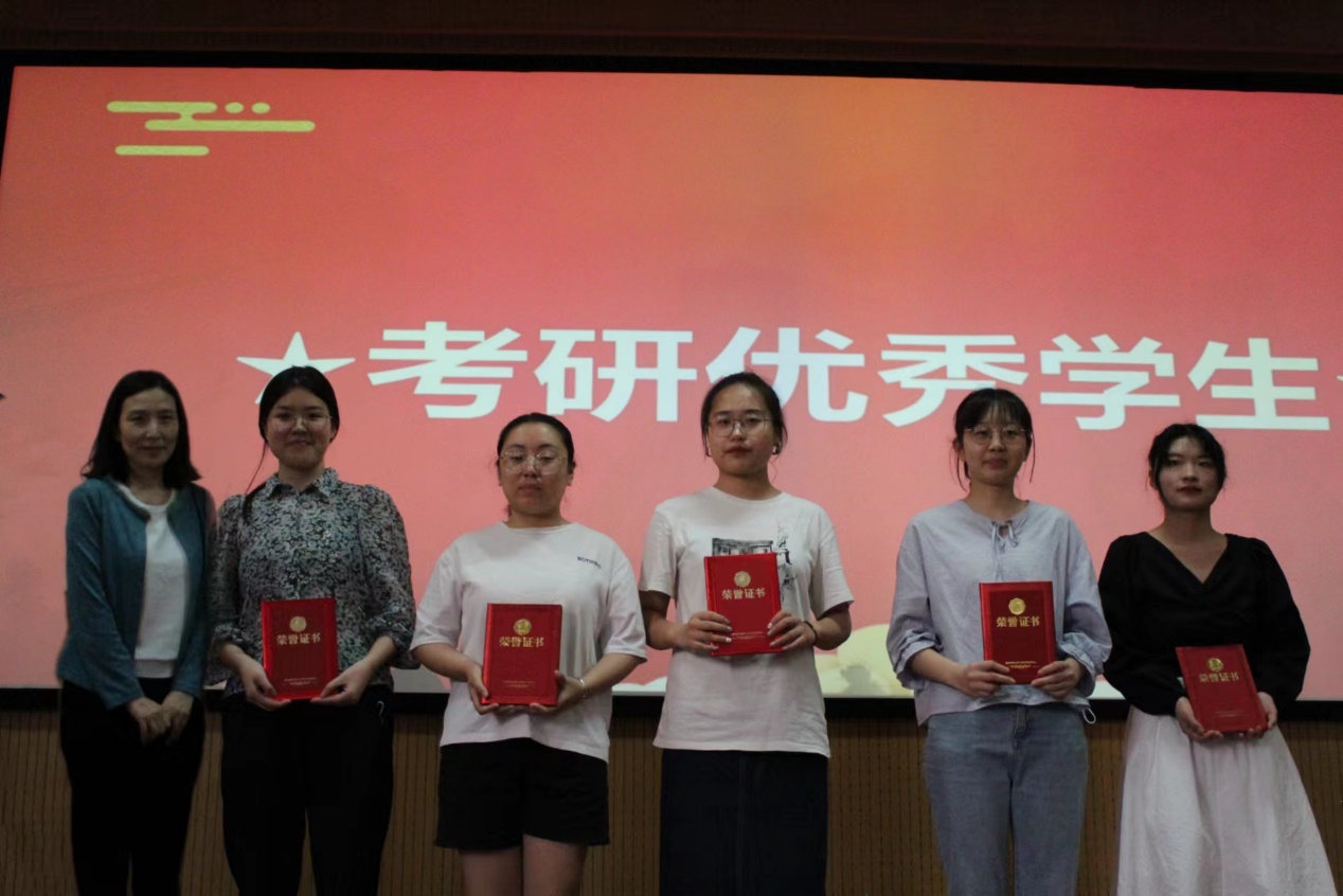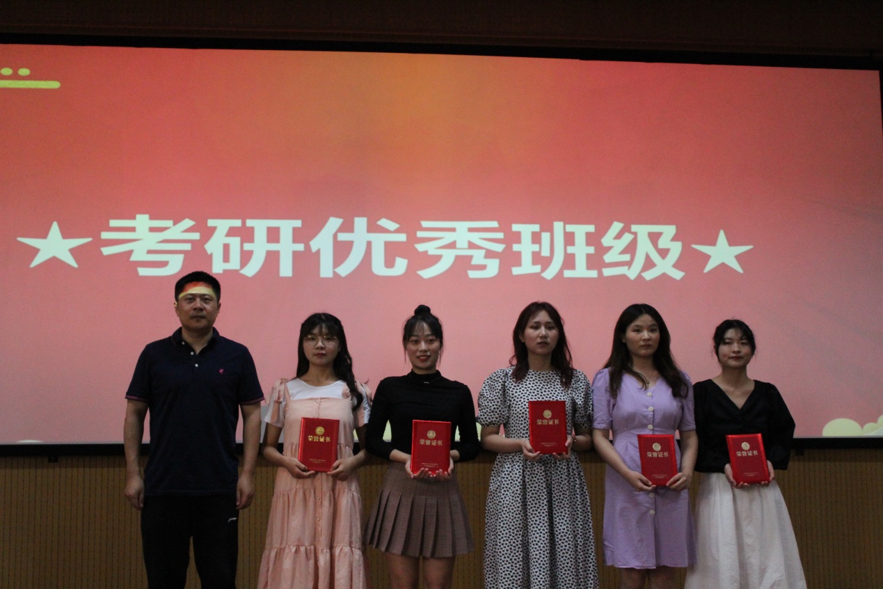院党委副书记曹崇、副院长张军民、娄宝翠分别为2022届考研优秀班级、优秀宿舍、优秀学生进行颁奖。2018级学生代表司萌萌和2019级学生代表谢慧颖分别发言,激励考研学子们用努力撑起野心,用奋斗成就梦想。