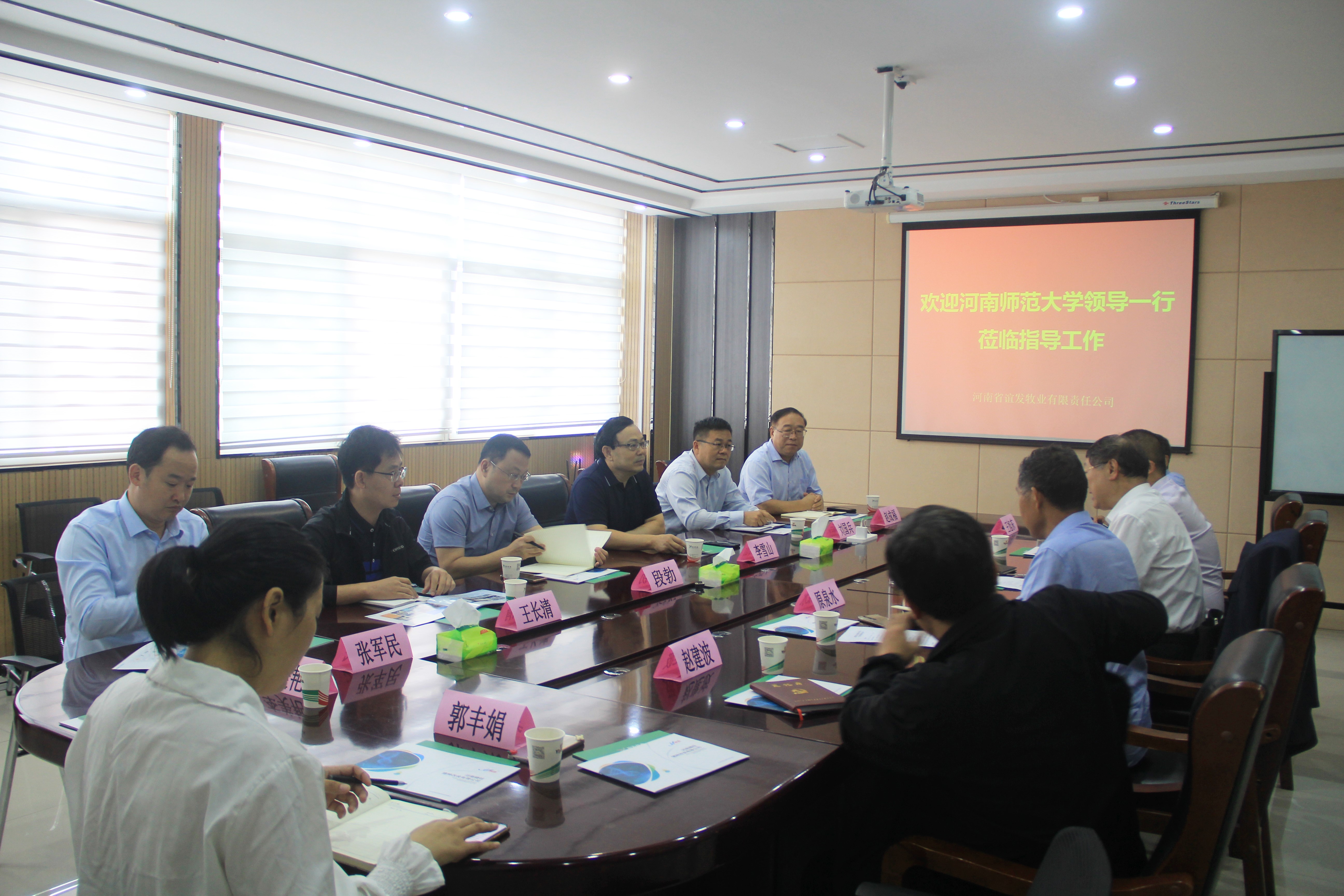 史全新主任对到访鹤壁表示热烈欢迎,并期望双方能够进一步加强校地、校企多方位合作,共谋发展,互利共赢。史全新介绍了鹤壁市的基本情况和高新技术企业的建设发展情况,并就鹤壁市“科技兴市、人才兴市”战略及发展规划做了简要介绍。李雪山代表学校向鹤壁市政府对我校事业发展尤其是人才培养方面的长期支持表示感谢。他详细介绍了学校的历史发展、学科建设、科学研究和人才培养情况。结合我校和鹤壁市各企业的前期合作情况,李雪山表示,鹤壁市高度重视高新技术企业的发展,是高校探索人才培养新模式的理想场所,是校企合作共赢的有效平台。他强调,学校应当深度结合社会需求和企业需要,鼓励各个学院主动走出师大深入企业,精准对接企业需求,有效组织科学研究和人才培养,把握人才培养的风向标,更好地做到人才培养服务企业发展。