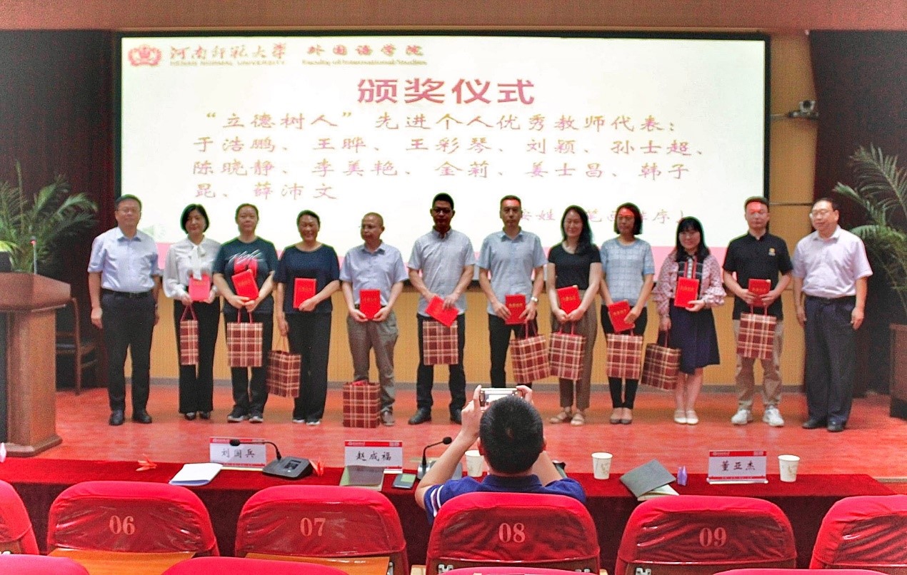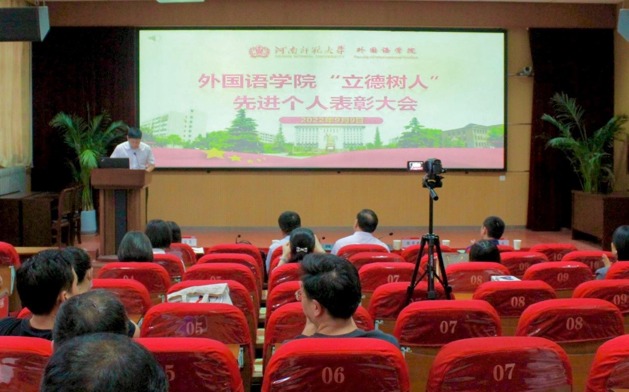 9月9日下午,在第38个教师节来临前夕,外国语学院在学术报告厅举办了第一届学院教师节“立德树人”先进个人表彰大会,表彰过去一年来在教学、科研、学生培养、社会服务方面取得突出贡献的学院教职员工。学院全体领导、科级干部、受表彰的11名教师及部分学生代表参加了会议。