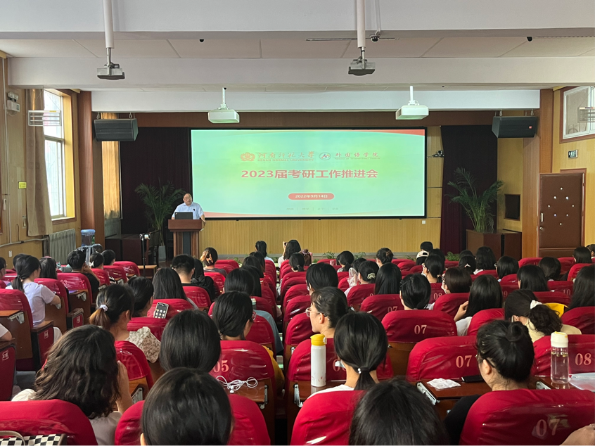 9月14日下午,外国语学院在学院报告厅举办2023届考研工作推进会,学院党委书记赵成福、党委副书记曹崇、2019级专兼职辅导员和本科生参加会议。会议由辅导员刘晓涵主持。