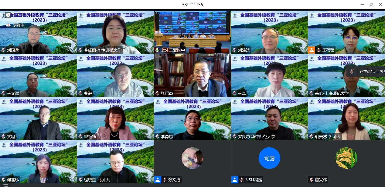 为进一步贯彻落实教育部普通高中和义务教育新课程方案和外语新课程标准,具体落实《海南省教育厅-上海市教育委员会加强推进两地教育合作发展协议》有关精神,上海市英语教育教学研究基地、上海外国语大学《外国语》编辑部、上海外国语大学三亚附属中学于202328日在海南省三亚市联合举办“全国基础外语教育‘三亚论坛’”。来自国内外45所高等院校的100余位专家、学者参加了会议。论坛采用线上线下相结合的方式开展,上午设有专家主旨报告论坛,下午安排了全国重点师范大学外语学院院长论坛,会议全程线上直播。我院院长刘国兵教授应邀出席会议并做大会发言。