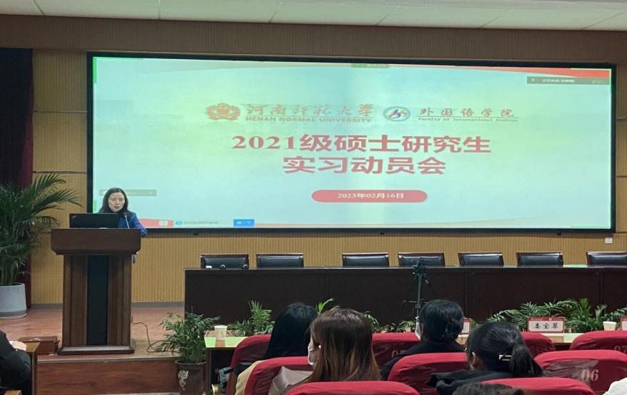 为保证实习工作的顺利开展,外国语学院于2月16日在学院报告厅召开2021级专业硕士实习动员会。外国语学院副院长娄宝翠、MTI教育中心主任张长辉、研究生辅导员钱江红出席本次会议,2021级全体专业硕士参加本次会议。本次会议采用线上+线下模式进行。