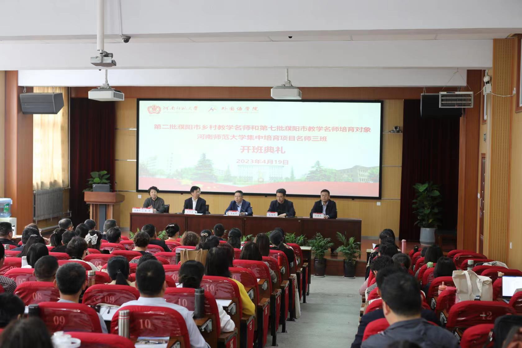 4月19日上午,由外国语学院承办的第二批濮阳市乡村教学名师和第七批濮阳市教学名师培育对象河南师范大学集中培育项目名师文科班在外国语学院学术报告厅举行开班仪式。党委常委、副校长马治军出席仪式并讲话,濮阳市教育局党组书记、局长高尚功、濮阳市教体局相关负责人及我校继续教育学院、外国语学院培训负责人参加。开班仪式由继续教育学院院长李津主持。