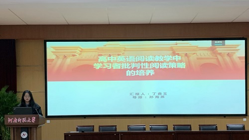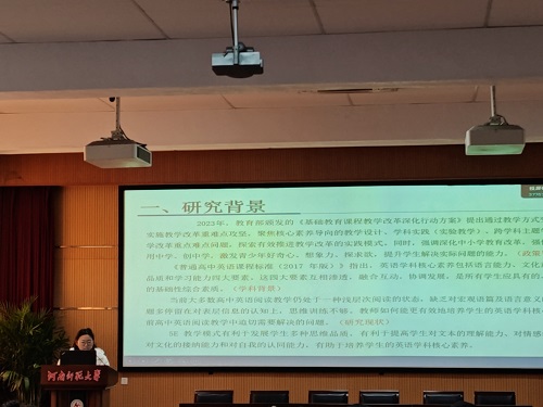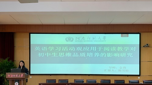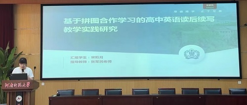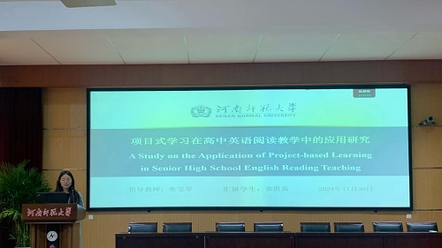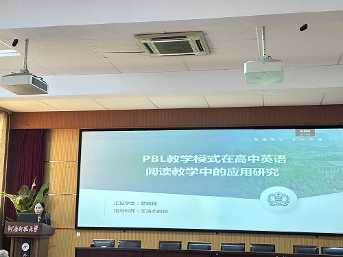 论坛伊始,7位研究生陆续分享了自己关于英语教学的研究成果和创新教学实践的反思。楚晓倩同学以《PBL教学模式在高中英语阅读教学中的应用研究》为题,探讨了PBL与高中生阅读成绩、阅读兴趣的关系,以及PBL在高中英语阅读教学中的策略。她指出,PBL是一种以学生为中心,以问题为导向的教学方法,强调跨学科、合作学习和实践应用。基于英语阅读教学现状以及高中英语新课标的要求,楚晓倩同学拟将 PBL模式应用于高中英语阅读教学当中,从而探究该模式的可行性与有效性,并提出相应的阅读教学策略来提高学生的阅读能力。