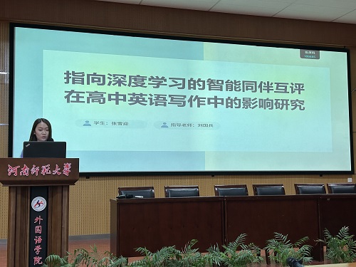 张雪迎同学以《指向深度学习的智能同伴互评在高中英语写作中的影响研究》为题,深入探讨了智能同伴互评在促进高中生英语写作能力提升中的作用。她指出,智能同伴互评作为一种有效的形成性评价工具,能够激发学生的学习动机,增强社会交互能力,并通过批判性思维的培养,提高学生的写作水平。张雪迎同学的研究强调了在英语写作教学中,同伴互评活动的重要性,并提出了具体的实施策略,包括设计以学生为中心的写作活动、实施同伴互评以及反思和优化教学方法。