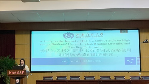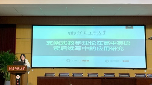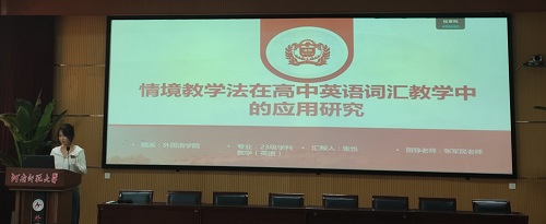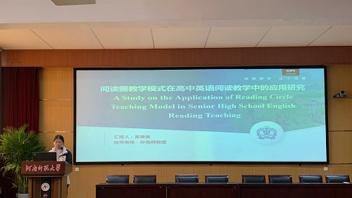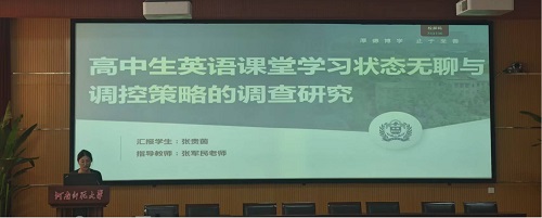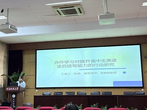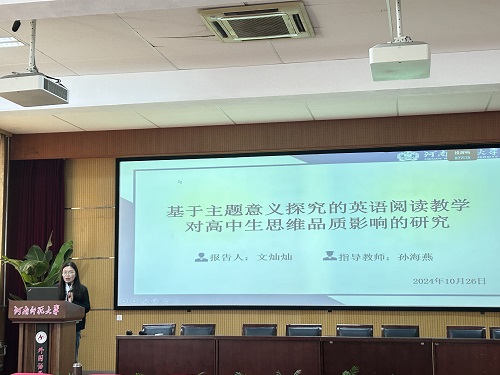 论坛伊始,7位研究生陆续分享了自己关于英语教学的研究成果和创新教学实践反思。翟菲菲同学聚焦《阅读圈教学模式在高中英语阅读教学中的应用研究》,深入剖析阅读圈模式如何通过学生分组承担不同角色,像组长组织讨论、总结者归纳要点等方式,改变传统阅读教学格局,让学生在自主与合作中提升阅读综合素养,使高中英语阅读课堂焕发出新的活力与深度。