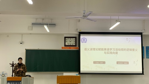 段莹同学以《语义波理论赋能英语学习活动观的逻辑要义与实践向度》为题,探讨了语义波理论与英语学习活动观的融合。段莹同学指出,当前英语教学存在一些亟待解决的问题,而英语学习活动观作为教育发展的重要理念,具有重要的指导意义。她进一步阐述了语义波理论与英语学习活动观之间的契合点,包括提升语言理解、促进知识建构、增强自主学习能力和改进教学评价等方面。在此基础上,段莹同学提出了语义波理论在语法和词汇教学中的具体实践策略,为教师提供了切实可行的教学建议。