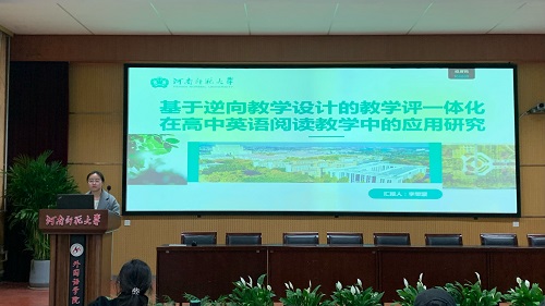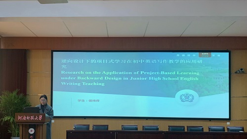 李文婕同学以《基于逆向设计的初中英语阅读教学应用研究》为题,分享了逆向教学设计在初中英语阅读教学中的应用与效果。她指出,逆向教学设计能够激发学生的学习兴趣和阅读动力,通过提供多样化的阅读材料和任务,帮助学生建立篇章框架,实现沉浸式阅读体验。李文婕同学的研究强调了逆向教学设计的灵活性和适应性,提倡教师根据本土教学环境和文化背景进行适当的修改。