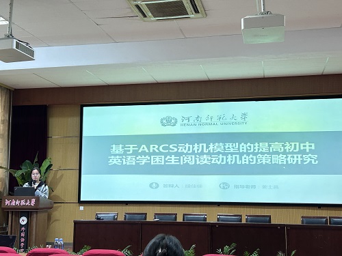 段佳佳同学以《基于ARCS动机模型的提高初中英语学困生阅读动机的策略研究》为题,探讨ARCS动机模型提高初中英语学困生阅读动机的相关策略。她指出,阅读动机是影响阅读行为的重要因素,而ARCS动机模型提供了提升学生英语阅读动机的新思路。她回顾ARCS动机模型及其在教育领域的应用,指出了国内对初中生英语阅读动机研究的不足,以此明确了研究问题,提出了研究流程,包括现状分析、对策研究,并计划ARCS模型应用于初中英语阅读教学中,以提升学困生的阅读动机。