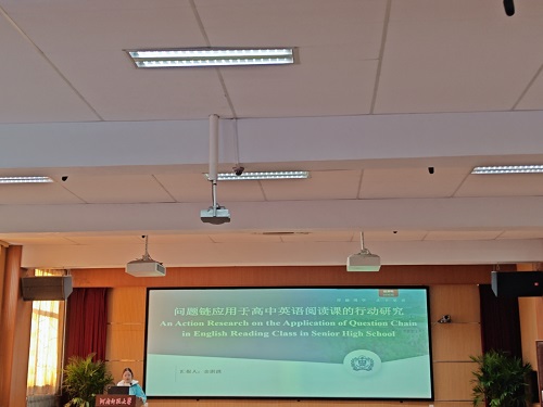 余淇淇同学以《问题链应用于高中英语阅读课中的行动研究》为题。阅读课常陷学生理解浅表困境,其引入问题链策略,依文本逻辑与思维特性织就问题网络。课堂以问为导,促学生深挖文本、激活思维,于信息整合、批判思维提升卓有成效,将阅读课变思维碰撞场,引领学生从被动向主动探索阅读之境跨越。
