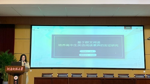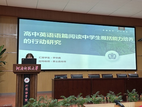 李华鑫同学以《高中英语语篇阅读中学生概括能力培养的行动研究》为题,分享了在高中英语教学中培养学生概括能力的重要性和实践方法。她指出,通过语篇阅读,学生能够提升提取关键信息、把握主旨大意的能力,这对于发展学生的综合语言运用能力至关重要。李华鑫同学的研究强调了以学生为中心的教学理念,提倡教师设计以语篇为核心的阅读活动,激发学生的主动学习和深入思考。