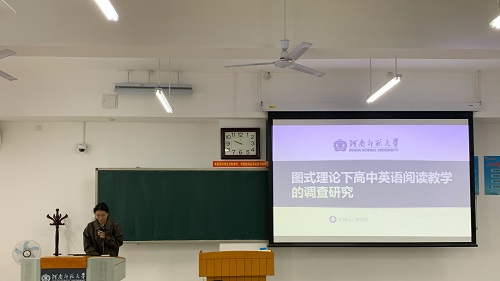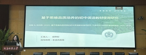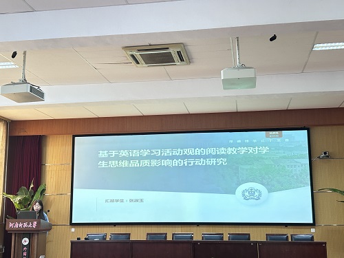 论坛伊始,6位研究生陆续分享了自己关于英语教学的研究成果和创新教学实践反思。李博同学以《基于群文阅读培养高中生英语阅读素养的应用研究》为题。为破高中阅读素养提升难题,李博推群文阅读。精筛文本组群,如“人与自然”主题汇多体裁。课堂施预测等策略,借思维导图挖内涵。成效显著,学生阅读量、质、速攀升,批判思维与文化品鉴力进阶,为阅读教学添深度拓展引擎。
