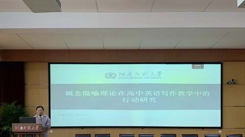 薄孟珂同学以《概念隐喻理论在高中英语写作教学中的行动研究》为题,探讨了概念隐喻理论在高中英语写作教学中的应用及其影响。她分享了概念隐喻理论的核心概念和工作机制,分析了该理论在写作教学中的潜在价值。薄孟珂同学的研究旨在探讨概念隐喻理论指导下的写作教学对学生写作能力的影响,强调了写作教学中思维能力培养的重要性,并提出了具体的教学策略,包括引入隐喻教学、提升学生的隐喻意识和应用能力。