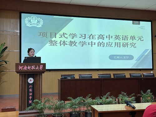 王宁同学以《项目式学习在高中英语单元整体教学中的应用研究》为题,分享了项目式学习在提升高中生英语单元学习效果中的重要性。她指出,项目式学习通过整合课程内容、设计互动性强的课堂活动、延伸课后主题以及融入学习评价,能够有效提升学生的学习动机、参与度和核心素养。王宁同学的研究强调了以学生为中心的教学理念,提倡教师设计基于真实情境的项目任务,激发学生的学习兴趣和探究精神。