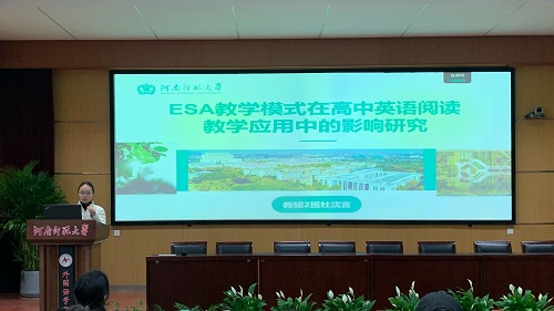 杜沈言同学以《ESA教学模式在高中英语阅读教学应用中的影响研究》为题,探讨了ESA教学模式在高中英语阅读教学中的应用及其对学生学习投入和学习成绩的影响。她详细解读了 ESA 教学模式的三个环节及学习投入概念,依据克拉申输入假说和建构主义理论,剖析了该模式在国内外的研究状况。研究设计围绕该模式在高中英语阅读教学中的现状、对学生阅读学习投入和成绩的影响展开,运用多种研究工具,设计了完整的实验流程。杜沈言同学的研究强调了ESA教学模式的实用性和灵活性,提倡教师根据学生的实际水平设计课程内容。