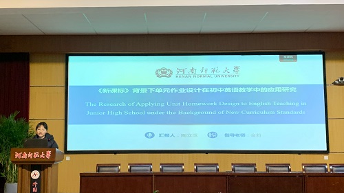 骆欣梦同学以《基于单元整体教学的高中英语作业设计的行动研究》为题,分享了单元整体教学理念下高中英语作业设计的现状和改进策略。她指出,作业设计应与单元教学目标、教学活动和学习评价相呼应,以促进学生核心素养的发展。骆欣梦同学的研究强调了作业设计的整体性和递进性,提倡教师设计具有目标性和系统性的作业,帮助学生巩固和拓展课堂所学。