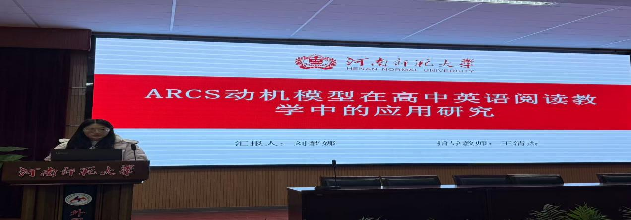 第三位刘梦娜同学分享的题目是《ARCS冬季模型在高中英语阅读教学中二应用研究》,该研究聚焦 ARCS 动机模型在高中英语阅读教学的应用,紧扣课标素养要求,针对教学中学生阅读动力不足等问题,探究该模型在激发学生阅读内在动机、提升课堂参与深度、优化阅读文本理解效果等方面的实际作用,旨在培育学习者“主动阅读与意义建构能力”,助力学生形成高效阅读策略、增强语言感知与逻辑分析素养,最终实现综合语言运用能力的全面提升,为高中英语阅读教学的提质增效提供可行路径与实践参考。