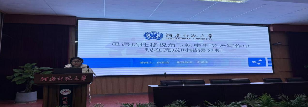 第二位白紫怡同学进行了题为《母语负迁移视角下初中生英语写作中现在完成时错误分析》的汇报。该研究立足母语负迁移视角,聚焦初中生英语写作现在完成时错误,结合课标要求与教学难点,以对比分析理论、错误分析理论和中介语理论为支撑,通过实证研究识别错误类型,甄别其中由母语负迁移导致的错误范畴,深入剖析不同写作水平学生在这类迁移错误上的特征差异,为揭示初中生时态习得规律、优化语法教学策略、提升学生语言运用能力提供实证依据与实践参考。