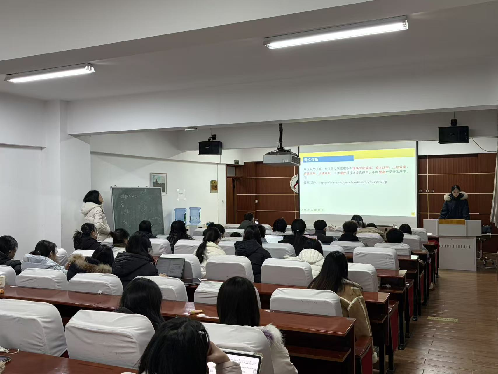 为深化研究生教学改革,创新翻译人才培养模式,助力国家国际传播能力建设,12月1日晚,外国语学院“《理解当代中国》进课堂——MTI中国时政文献翻译论坛”在国培教室顺利举办。这次论坛由三位2024级翻译硕士研究生主讲,聚焦教材第八单元“高质量发展,就是从‘有没有’转向‘好不好’”核心主题,由赵攀老师担任点评嘉宾,现场学术交流氛围浓厚。