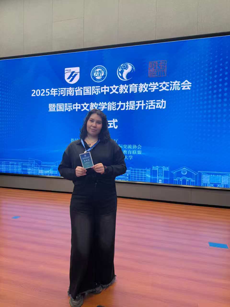 11月28日至30日,“2025年河南省国际中文教育教学交流会暨国际中文教学能力提升活动”在河南大学郑州龙子湖校区成功举办。本次活动由河南省教育厅指导,河南省教育国际交流协会主办,河南省国际中文教育联盟、中文联盟与河南大学联合承办。我院2025级学科教育(英语)专业硕士留学生海丽在活动中表现优异,凭借精湛的教学设计与出色的现场展示,荣获留学生组一等奖。