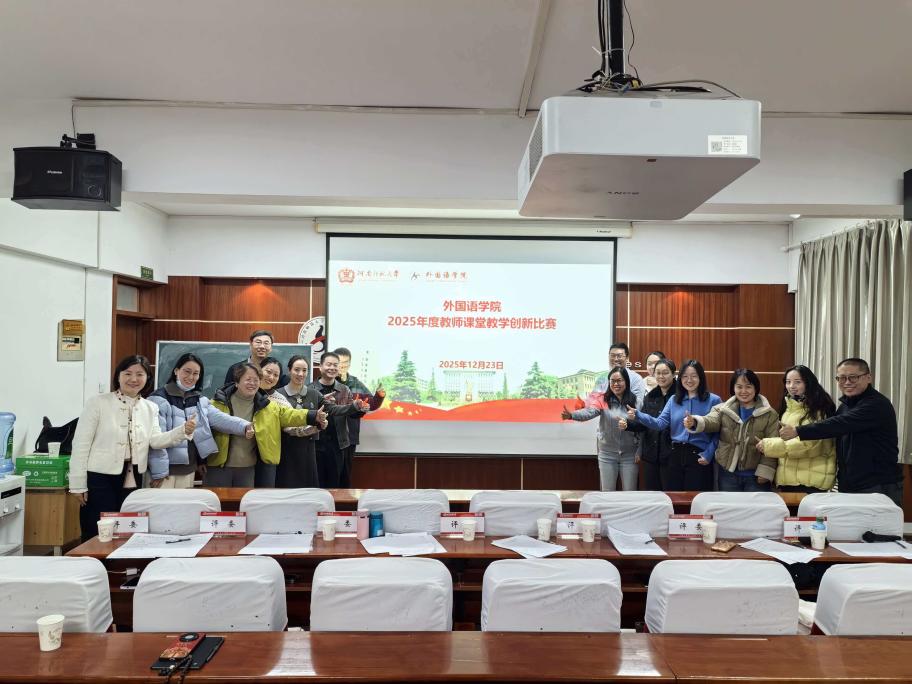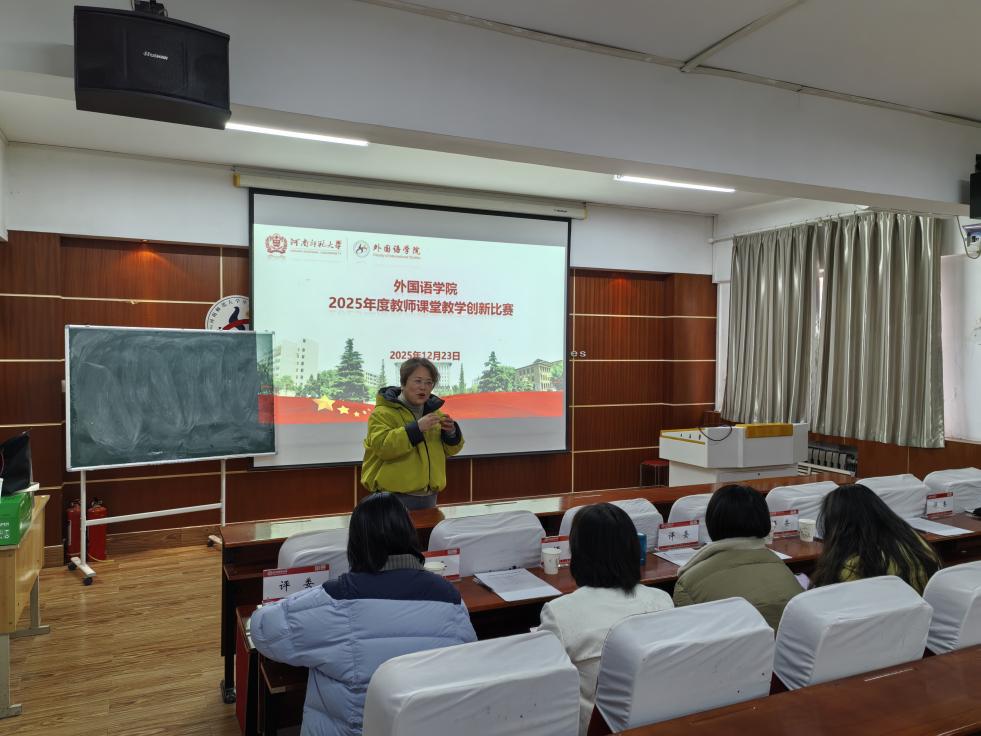 为全面落实立德树人根本任务,积极响应学校关于举办2026年教师课堂教学创新大赛暨教学技能竞赛的工作部署,推动信息技术与教育教学深度融合,持续提升教师教学创新能力与育人水平,12月23日下午,外国语学院于国培教室成功举办2025年度教师课堂教学创新院级比赛。