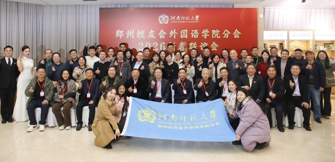 1月24日下午,河南师范大学郑州校友会外国语学院分会2026新春联谊会在郑州盛世民航国际酒店举行。郑州财经学院党委书记、河南师范大学校友总会会长马治军,河南师范大学原党委书记、郑州轻工业大学原党委书记、郑州校友会会长林世选,河南农业职业学院原党委书记刘源,河南省豫教国际教育科技有限公司董事长、郑州校友会外国语学院分会会长李哲及外国语学院相关负责人出席会议并致辞。在郑校友代表百余人齐聚一堂,共叙母校情,共话发展路。分会秘书长戚继东主持会议。