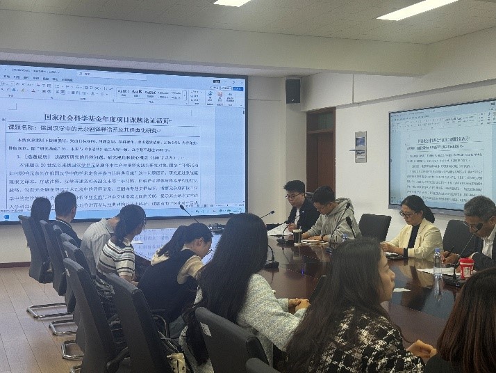 活动伊始,刘强介绍了本次论坛的主题与意义,鼓励青年教师积极参与国家社科基金等高层次项目申报。随后,三位主讲人围绕自身申报经历与项目亮点进行了深入阐述。首先,静柏良博士以“俄国汉学中的元杂剧译释谱系及其经典化研究”为题,系统梳理了自20世纪以来俄国汉学界元杂剧译介、经典化路径及学术影响力。他结合自身科研及项目经历,分析了元杂剧译本在俄国文学中的传播机制,探讨了译作在跨学科与国际传播中的学术价值,强调了资料系统梳理与创新表达的重要性。接着,王婉婉博士以“历史社会语言学视域下的俄语汉源词输入与嬗变研究”为主题,聚焦俄语汉源词输入的机制与历史变迁。她立足于语料数据与社会文化互动,深入探讨了汉源词在俄语中的接受与分布逻辑,提出了对异质语言接触现象的独到见解。最后,赵红艳博士结合自身2026年国社科申报书,从“申报书选题创新”“理论与方法设计”到“论证版块优化”等环节,详细讲述了自己的思考路径。她强调了学术语篇中跨语言行为的功能分层及结构特点,梳理了高水平申报书写作过程中的重点与难点。