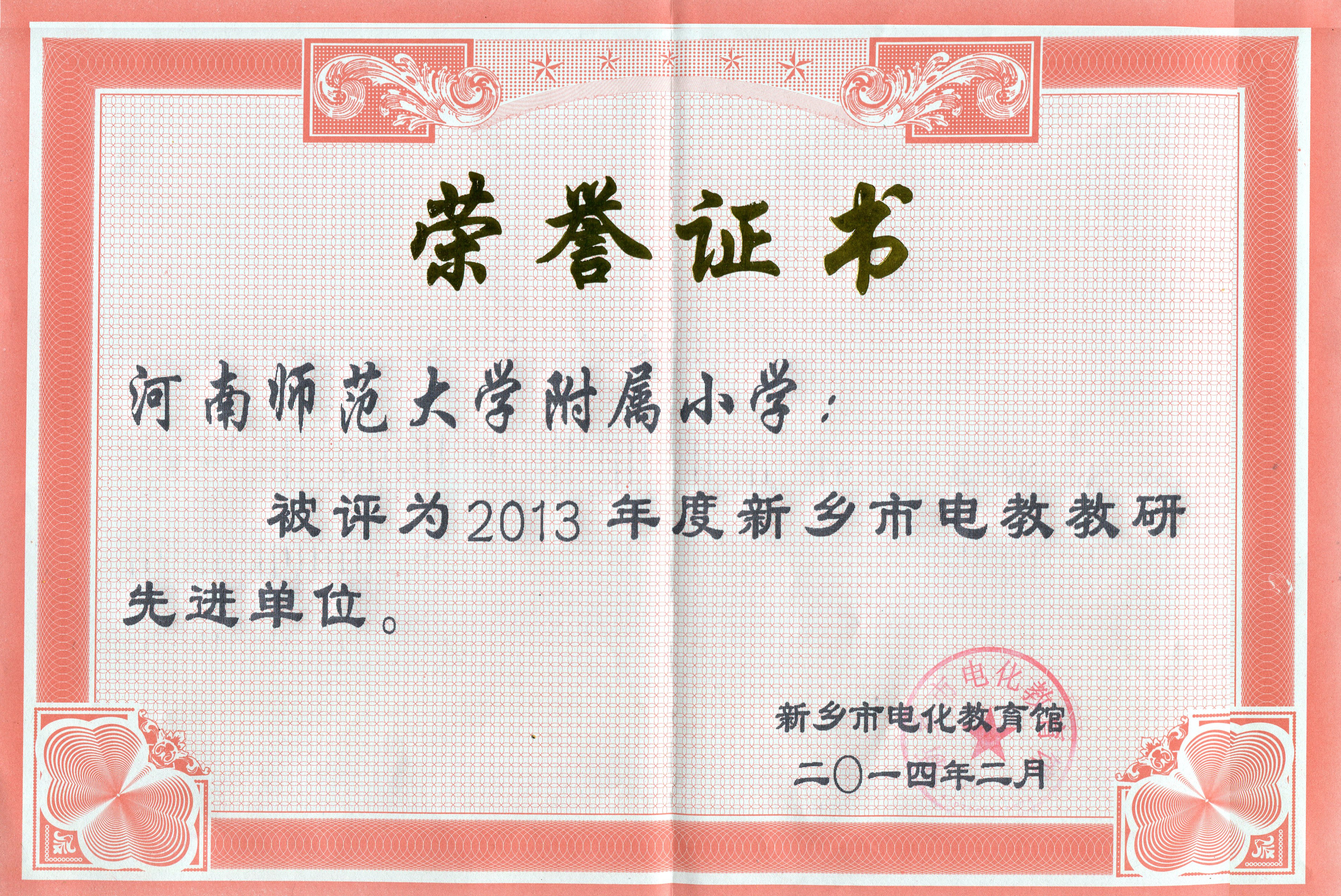 在新乡市2013年的电教工作中取得了突出成绩,被新乡市电化教育馆评为“电教