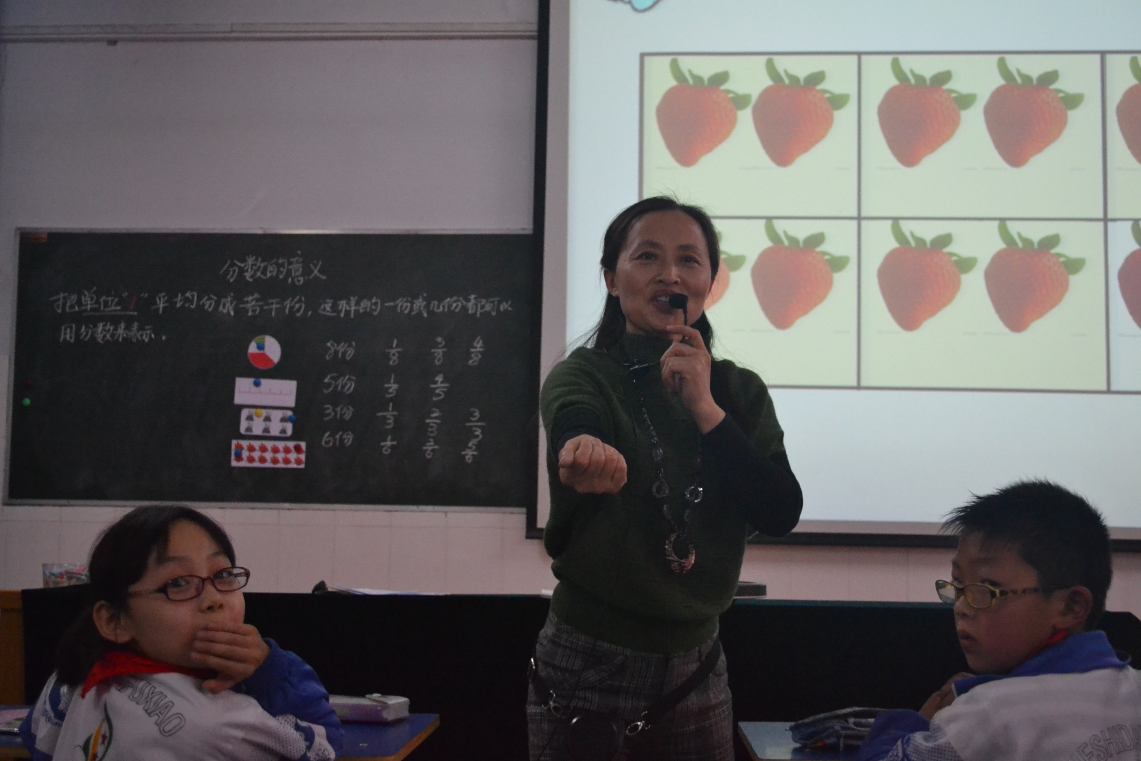 3月26日下午,附属小学全体教师在四楼多媒体教室听尚景新老师讲《分数的意义》一课。