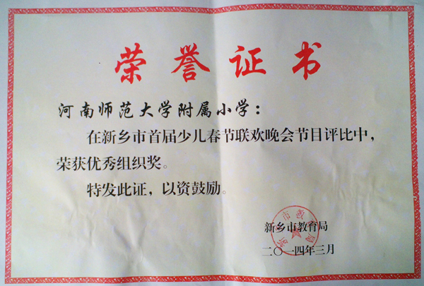 附属小学获新乡市首届少儿春晚优秀组织奖