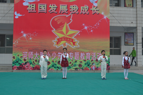 为开展爱国主义教育,附属小学于20141031日开展“祖国发展我成长”主题教育活动,同学们用他们的智慧演绎了许多经典美文。在班主任老师的带领下,开展了经典的诗歌朗诵比赛:同学们带来的《我深深爱恋着的祖国》《祖国——我心中的一首歌》《常怀一颗感恩的心》《我骄傲,我是中国人!》《中华少年》《我爱母亲、我爱祖国》《我们的中国梦》……让我们欣赏到了一篇又一篇,一首又一首歌颂祖国、歌颂母亲、歌颂老师的美文佳作。有气势磅礴的语调、有娓娓动听的话语、有激情昂扬的心声,从同学们的朗诵中能感受到朗诵者和作者心灵上的情感交流,并将这种沟通和感悟融化在朗诵中。