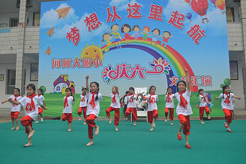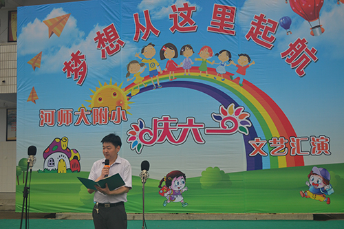 校长助理朱华北首先向孩子们表示节日的祝贺,向全体老师表示诚挚地慰问;接着热情洋溢地表扬了孩子们取得的成绩,充分肯定了附属小学开展的各项工作。最后祝愿附小再接再厉,取得更大的成绩。