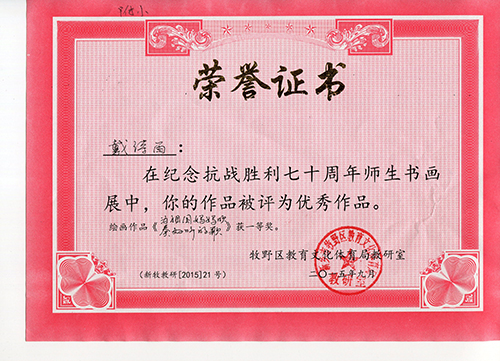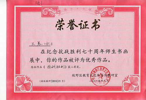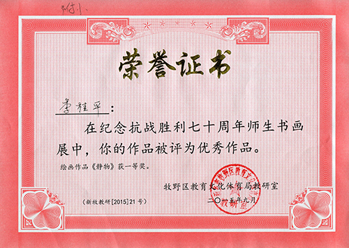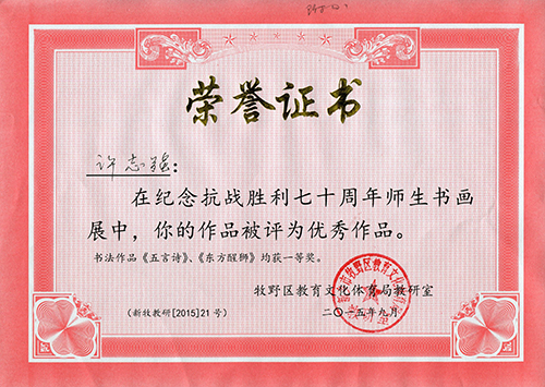 我校师生在《纪念抗战胜利七十周年师生书画展》中获奖