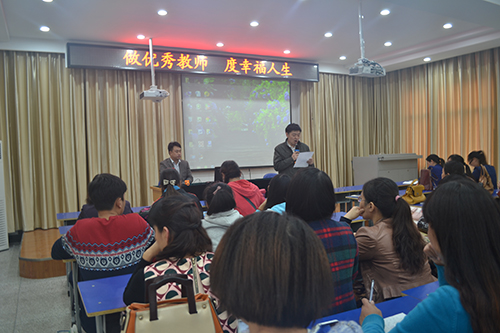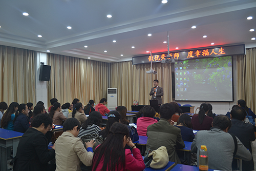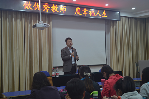 10月22日下午,附属小学邀请河南省家庭教育指导中心副主任、华东师范大学心理学硕士董放老师,为全体教师做了题为《做优秀教师,度幸福人生》的讲座。 董放老师用幽默风趣的语言、生动鲜活的案例,诠释了“学”、“习”的含义,提出“有追求、有理想人生才能幸福”、“打好基础才能教育、培养好人”、“教育者要心中有爱”等观点 董放老师的授课深入浅出,幽默风趣,春风化雨,润人心田,教师们在享受的同时,获得了人生的智慧和启迪。 (李万里)