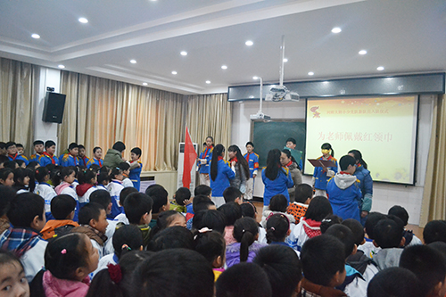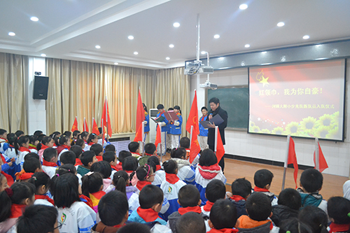 2016年1月8日,我校大队部隆重举行了一年级新生的入队仪式,一年级102名学生光荣地加入了中国少年先锋队组织。学校紧紧抓住这一契机,引导队员们继承和弘扬少先队的光荣传统,增强少先队员的光荣感、自豪感,展示新时期我校少先队员乐观、积极和向上的精神风貌。