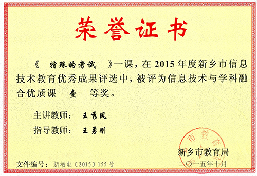 王秀凤老师获市信息技术与学科融合优质课一等奖