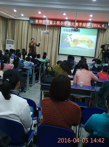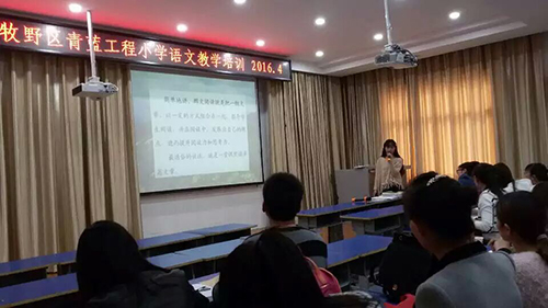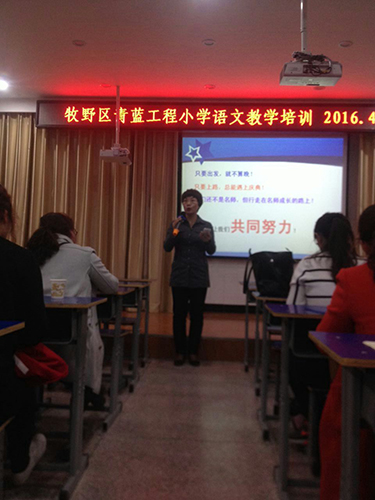 4月5日下午,“牧野区青蓝工程小学语文教学培训”在我校四楼多媒体教室进行。此次培训,共有50多位年轻语文老师参加,由区语文教研员杨艳芳老师主持和点评。
