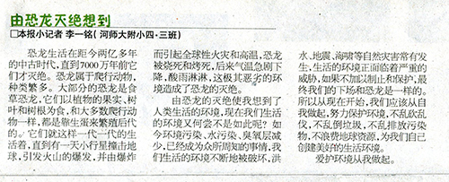 平原晚报:河师大附小学生李一铭作文《由恐龙灭绝想到的》