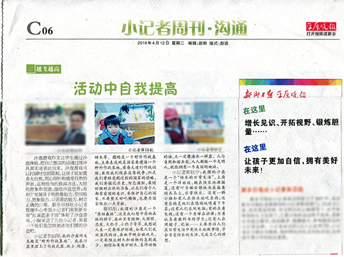 平原晚报:河师大附小学生薛祎航在沙盘活动中自我提高